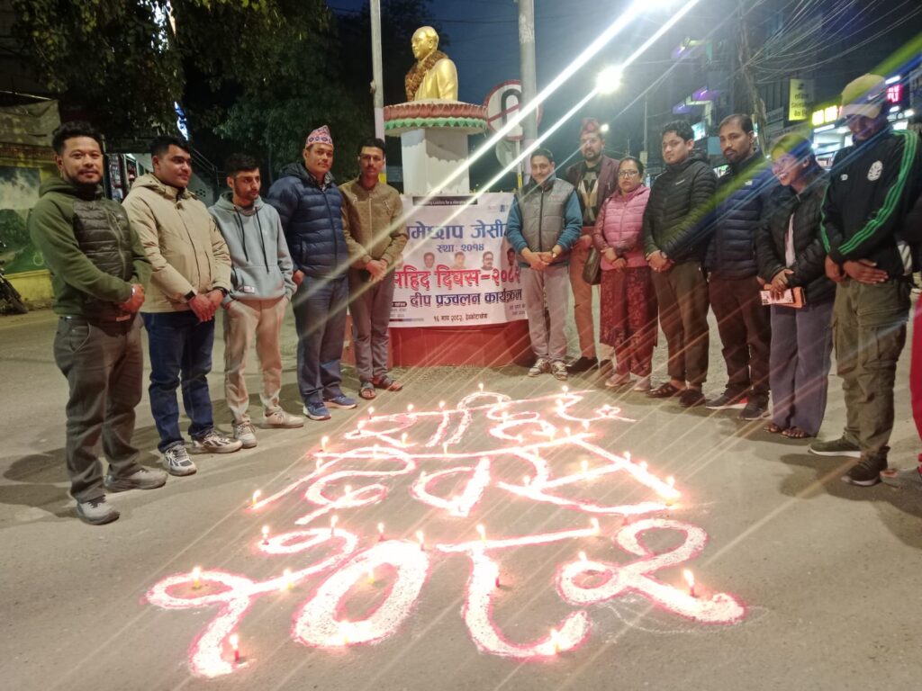 रामेछाप– देशका लागि आफ्नो अमूल्य जीवन अर्पण गर्ने सहिदहरूको स्मरण गर्दै रामेछाप जेसिजले दिप प्रज्वलन कार्यक्रम आयोजना गरेको छ । शुक्रबार साँझ मन्थलीको देवकोटा चोकमा आयोजित कार्यक्रममा विभिन्न कालखण्डमा सहिद भएका सहिदहरूप्रति श्रद्धाञ्जली अर्पण गर्दै दिप प्रज्वलन गरिएको हो ।