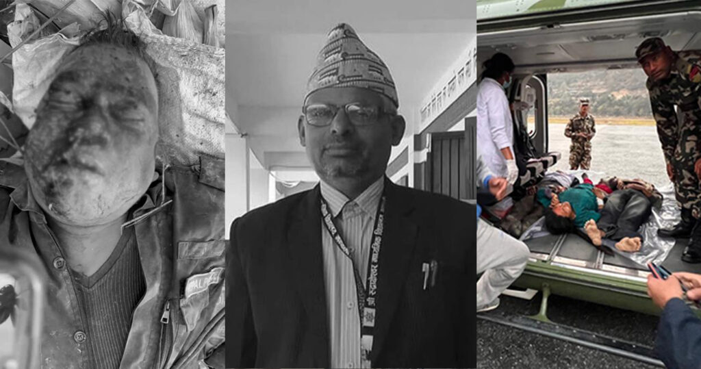 त्यस्तै घाइते हुनेहरूमा भिम बहादुर मानन्धर, सम्बर बहादुर मानन्धर, कृष्णप्रसाद घिमिरे, दुर्गा कार्की, सविना खड्का, केदार कुमार रोका, पुजादेवी सुनुवार र कमला ढुंगेल रहेका छन् । घाइते मध्ये कमला ढुंगेल बाहेक ७ जनालाई नेपाली सेनाको हेलिकप्टर मार्फत काठमाण्डौको आर्मी अस्पताल लगिएको छ ।